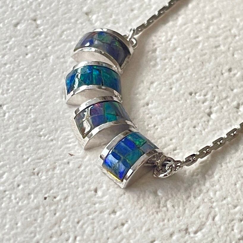 オパールならではの独特な色合いで輝く、小ぶりでつけやすいネックレスです。