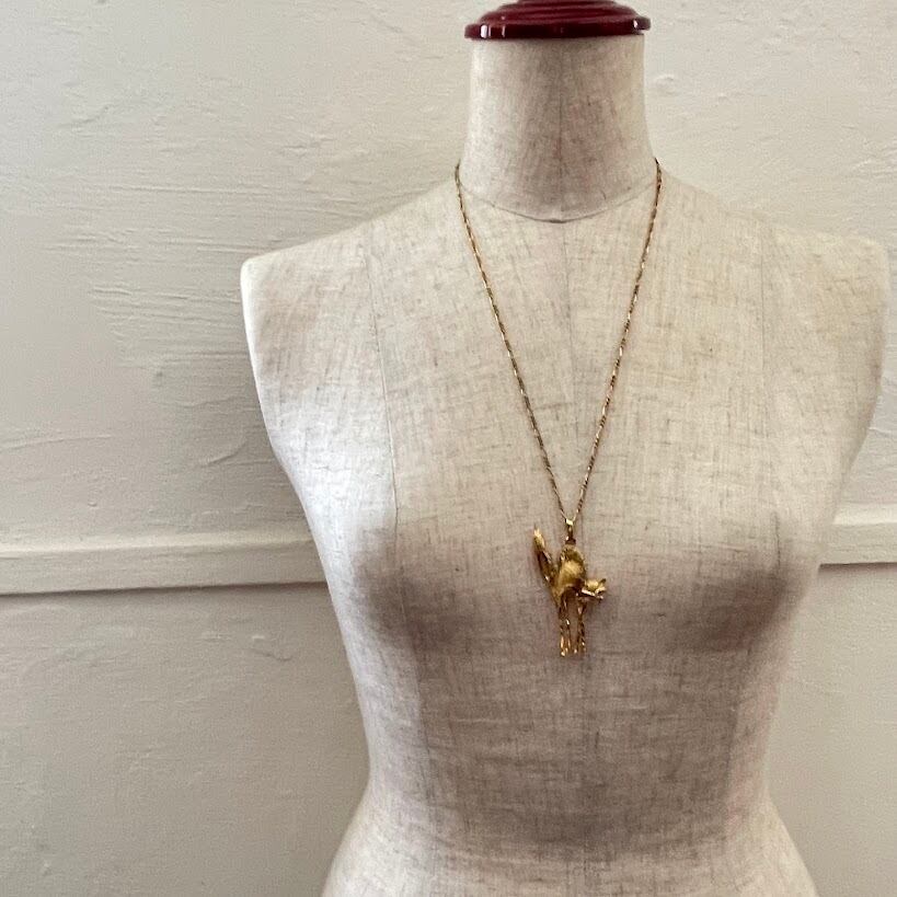 動きのある猫のデザインが素敵なメタルのネックレスです。
