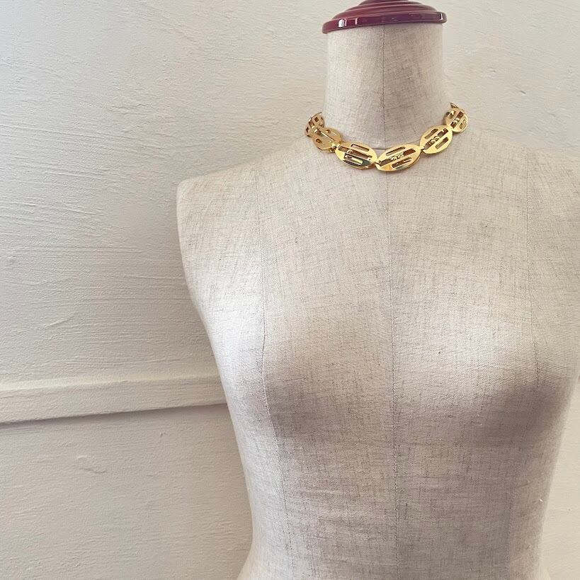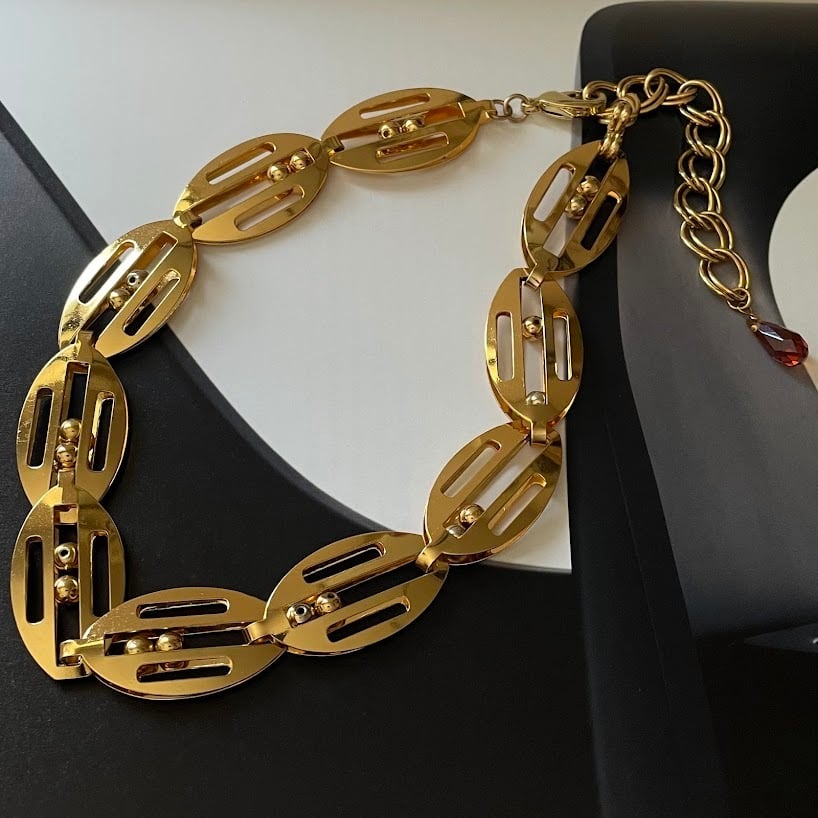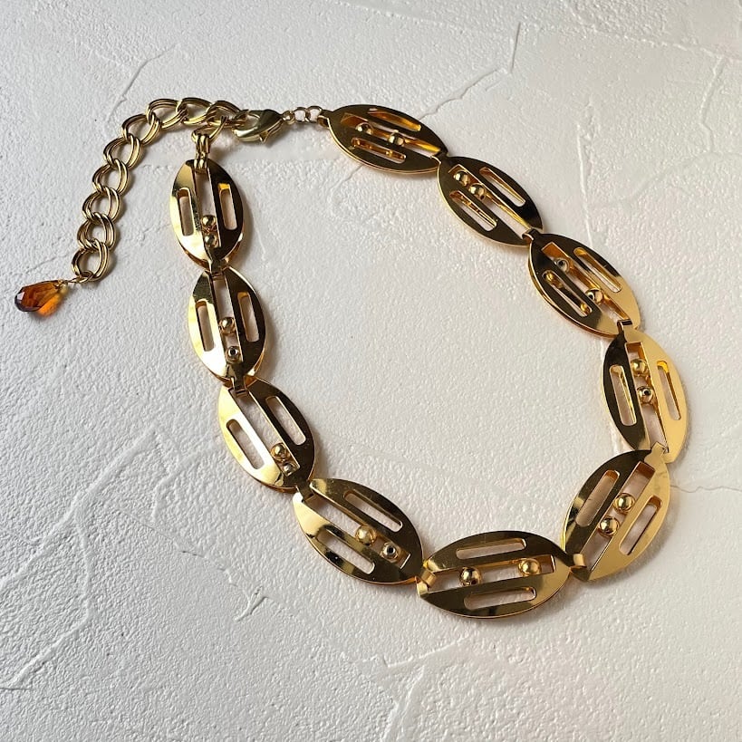 立体的なオーバルパーツが存在感のあるメタルネックレスです。