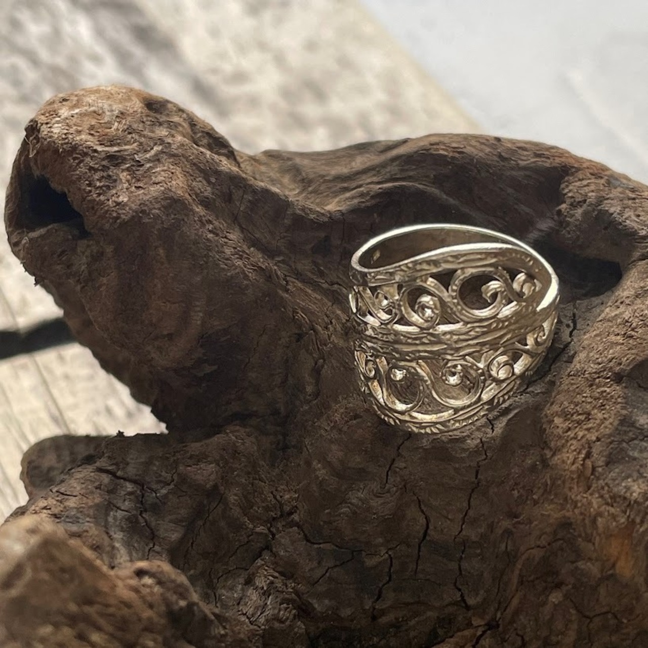 繊細な透かしデザインが雰囲気あるシルバー925のリングです。