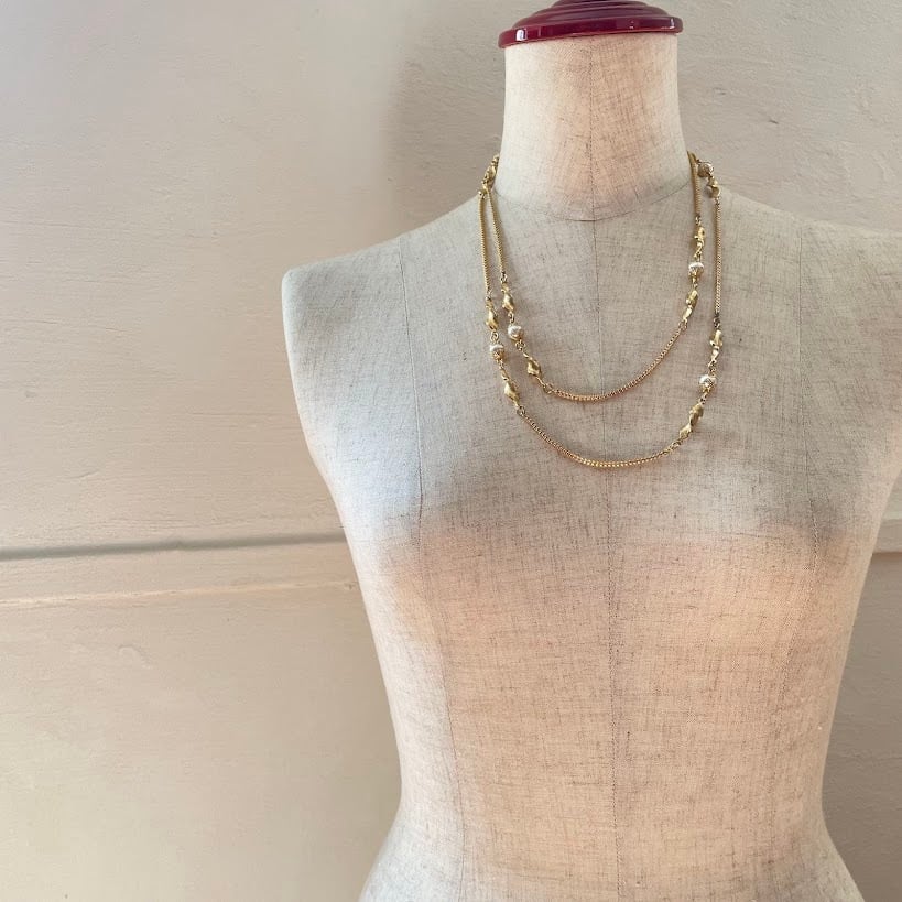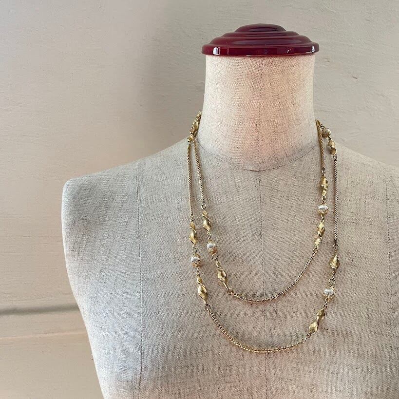 ロング パール リーフ ネックレス《N-0491》