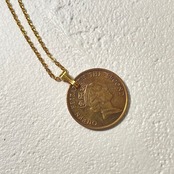 香港で1991年に発行されたヴィンテージコインをリメイクして作られた、ハンドメイドのネックレスです。
