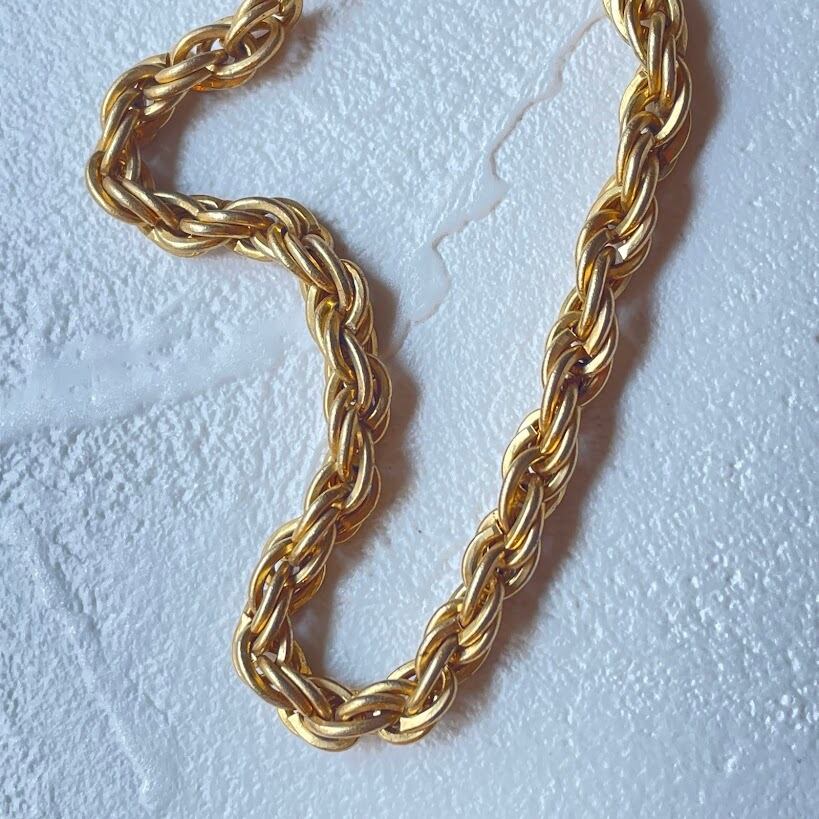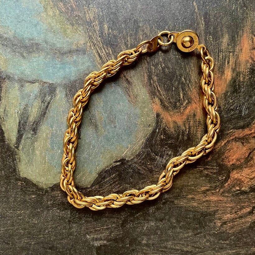 螺旋状にチェーンを組んで作られた立体的なデザインが素敵なブレスレットです。