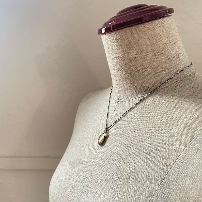 メダイのデザインに雰囲気がある、きれいなカラーのヴィンテージネックレスです。メダイは両面同デザインになります。