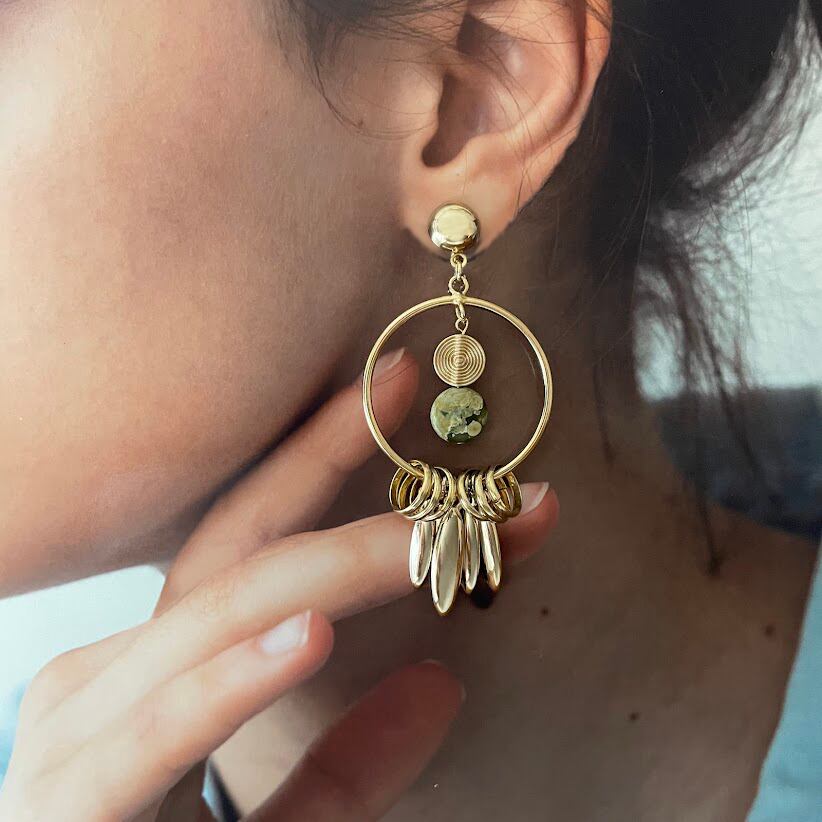 サークルデザインときれいな柄の天然石が魅力のイヤリングです。
