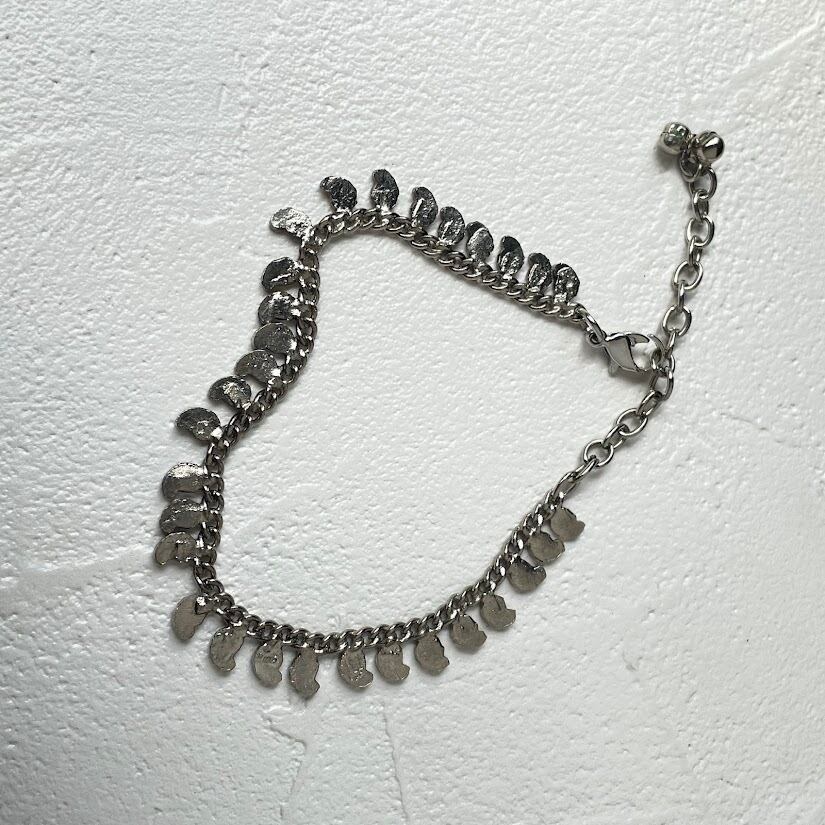 カニカン近くにあるパーツから優しく鈴の音が聞こえてくる、ペイズリーパーツが雰囲気あるブレスレットです。