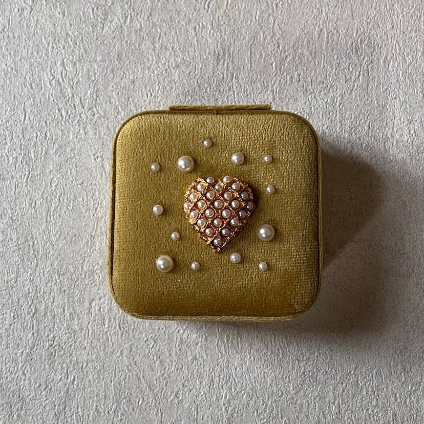 新品のジュエリーボックスに、ユーズドアクセサリーのモチーフ部分を装飾したアップサイクルアイテム。