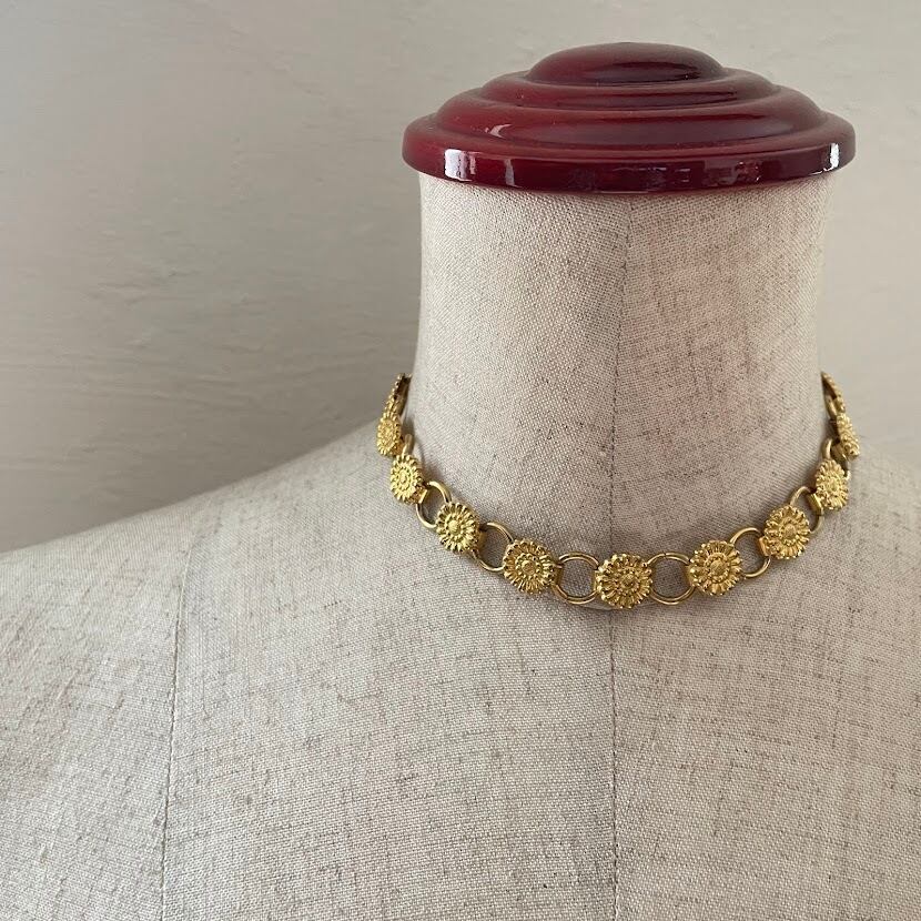 ボタニカルデザインが雰囲気あるショートネックレスです。