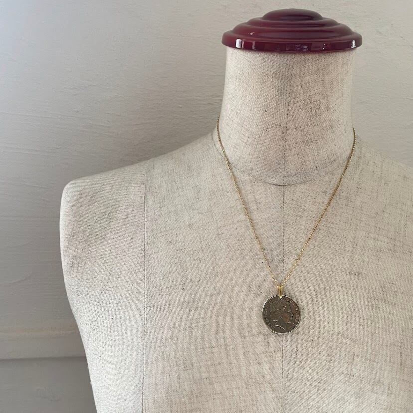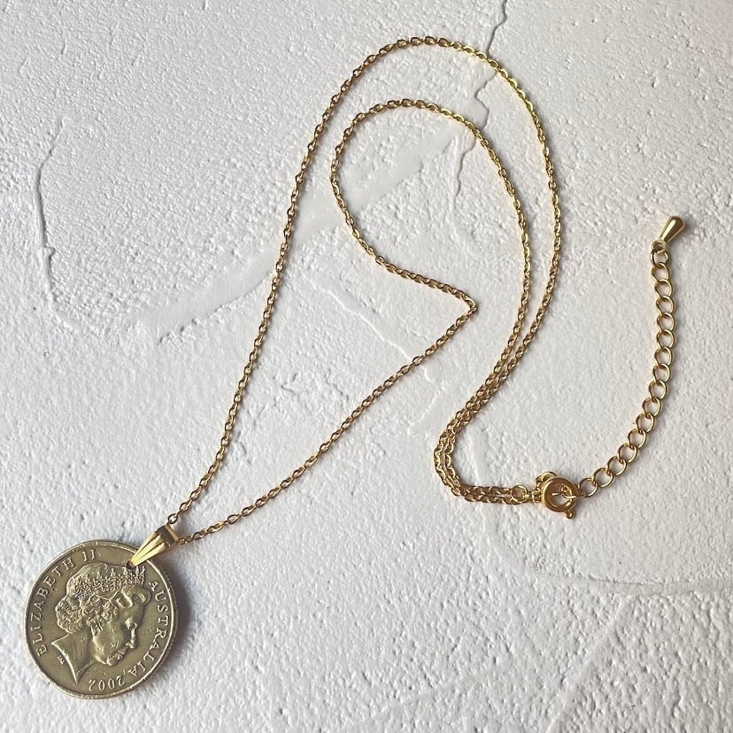 オーストラリアで2002年に発行されたヴィンテージコインをリメイクして作られた、ハンドメイドのネックレスです。