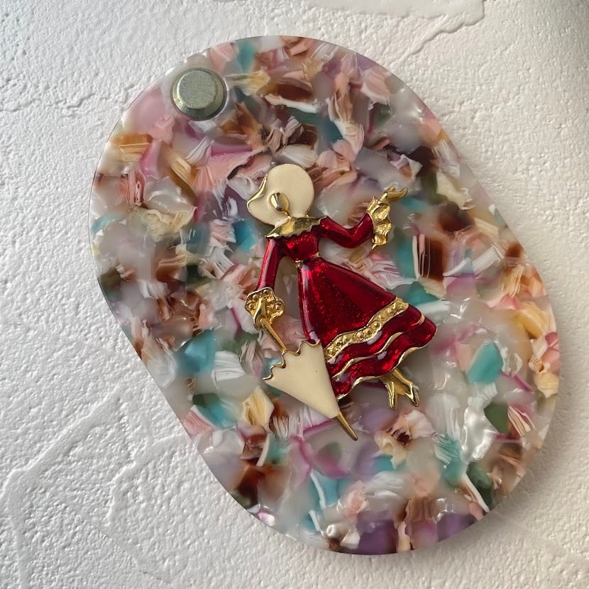 アセテート特有の質感や柄とUSEDモチーフの組み合わせが、ノスタルジックな雰囲気を感じさせる一点もののミラーです。