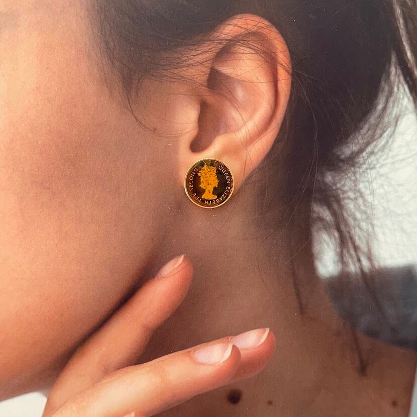ヴィンテージのカフスをリメイクしたパーツに、シルバー925を組み合わせたアップサイクルアイテム。コインの部分が温度によって、色がグリーンやブラックに変わる仕様になっています。