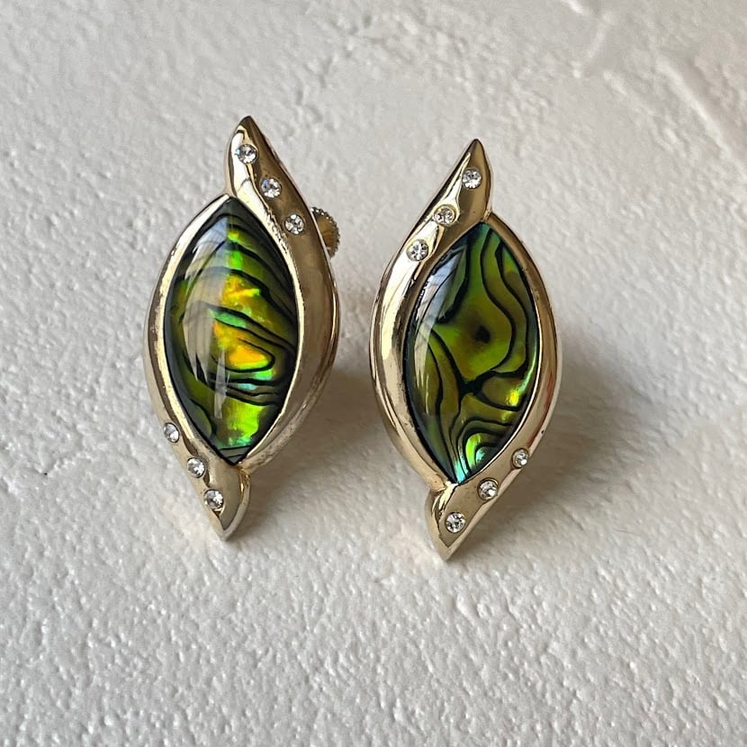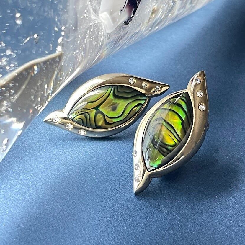 シェルシートをレジンでコーティングした、光があたると艶感が出るイヤリングです。