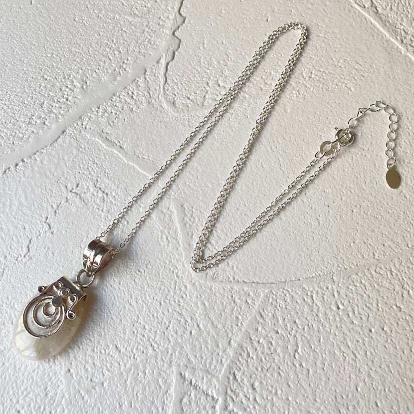 透明感あるムーンストーンに光があたるとブルーに輝くSILVER925のネックレスです。