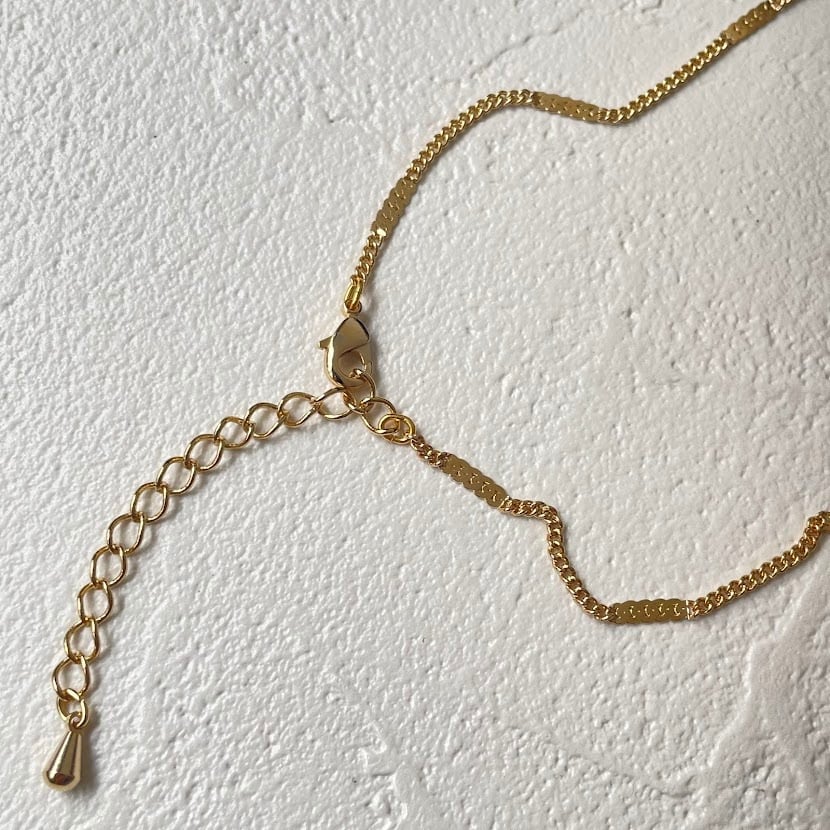 留め具はベーシックなカニカンタイプでアジャスターが付いているため長さ調整が可能です。