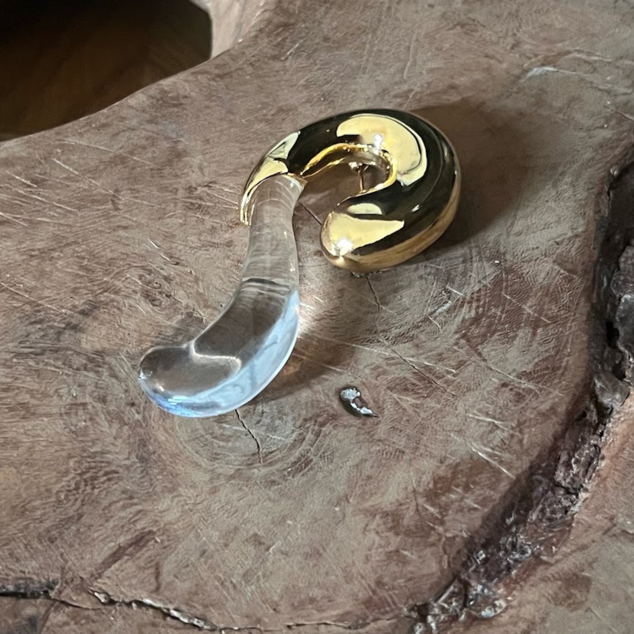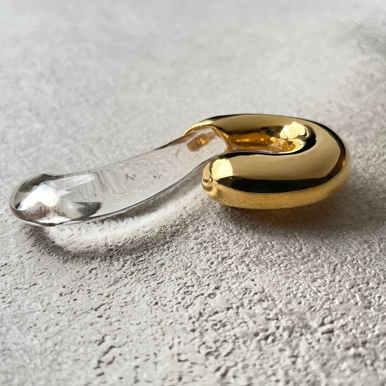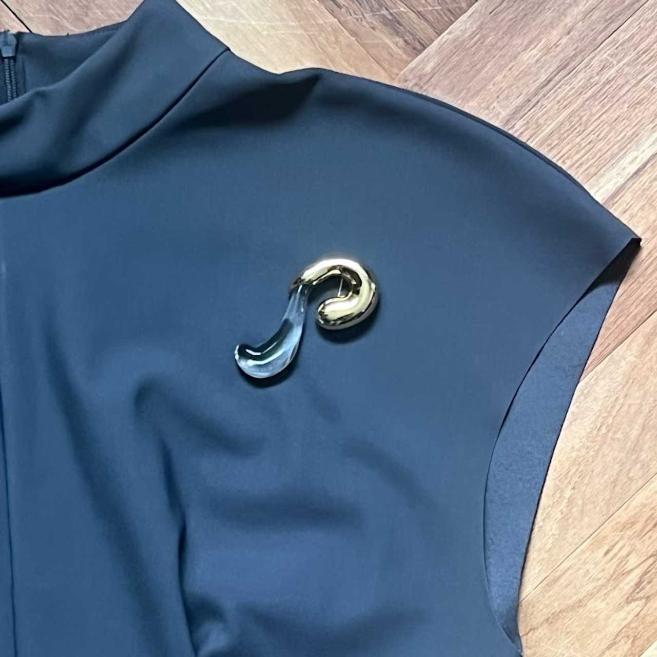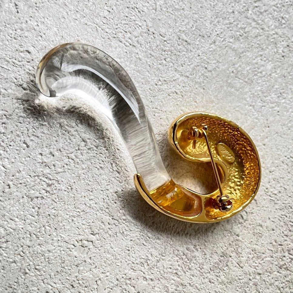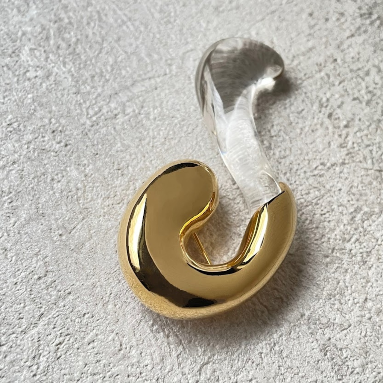 メタルと透明感ある樹脂の組み合わせが魅力のブローチです。
