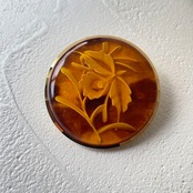 花が立体的に見えるよう、裏側から特殊な技術で彫られているブローチです。