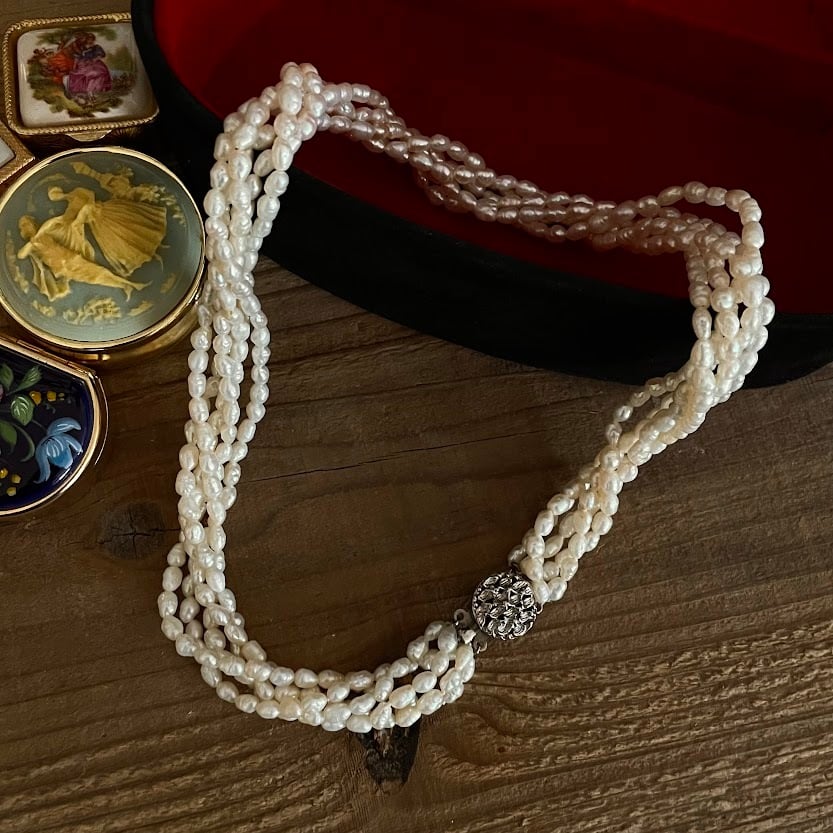 贅沢に使った淡水パールとSILVER素材の装飾された金具が魅力のネックレスです。