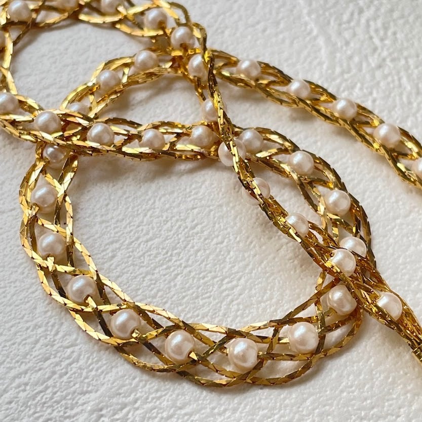 メタルを編み込んだ、抜け感あるデザインが魅力のネックレスです。