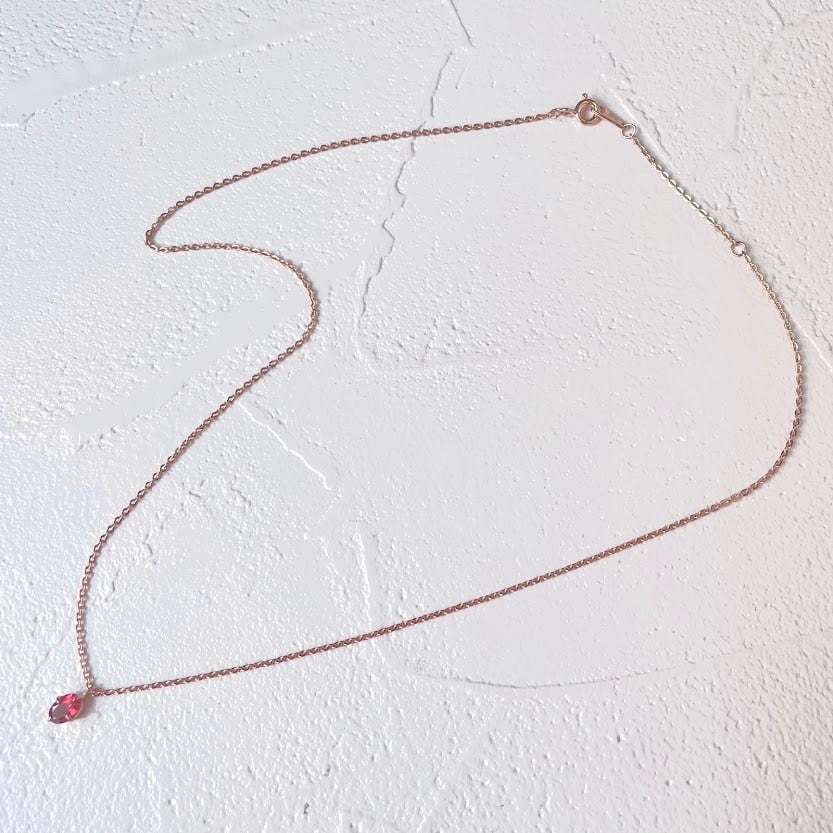 カットが入った小ぶりなガーネットが上品に輝く、シルバー925のピンクゴールドメッキ仕上げのネックレスです。