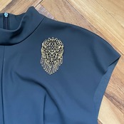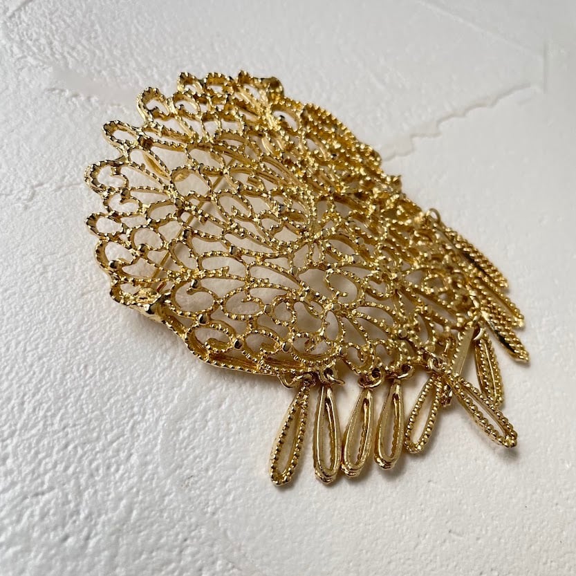 レースのようなデザインと揺れるパーツが魅力のブローチです。