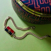 艶感あるバイカラーの色合いがきれいな、ロベルタディカメリーノのロゴのブレスレットです。