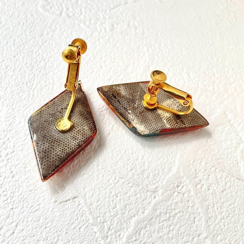 カラフルな色合いがコーディネートのポイントになる、蛇柄のイヤリングです。
