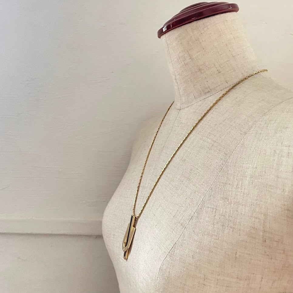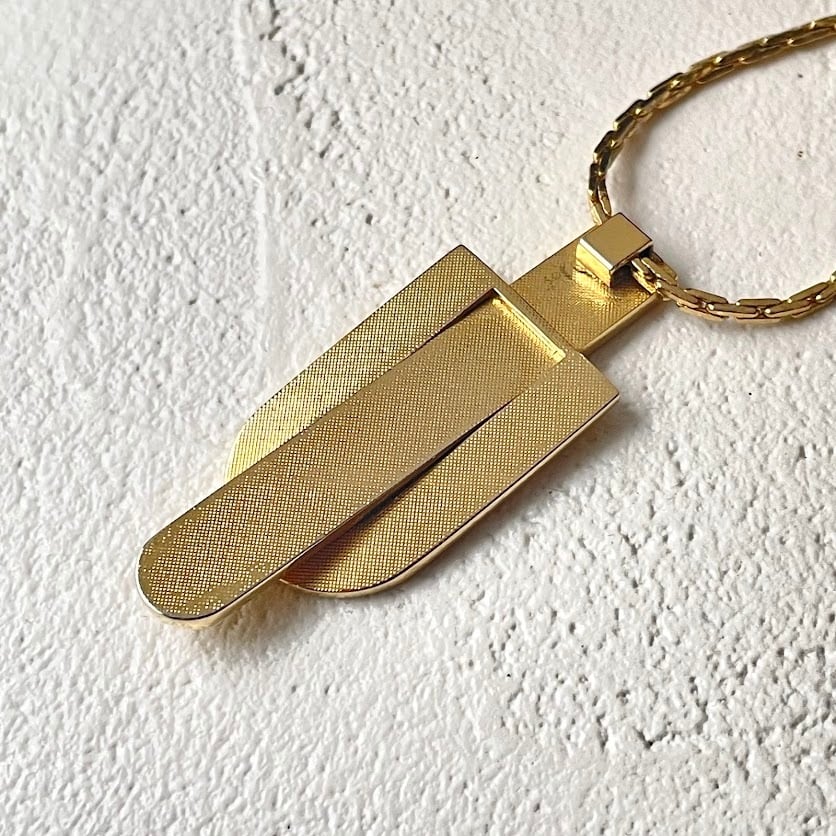 曲線と直線の組み合わたデザインが素敵なピエールカルダンのネックレスです。