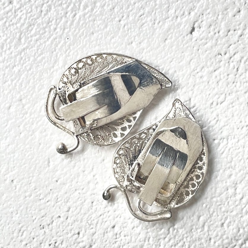 金属を糸状にして特殊な技法で作られている、繊細なデザインが魅力的なイヤリングです。