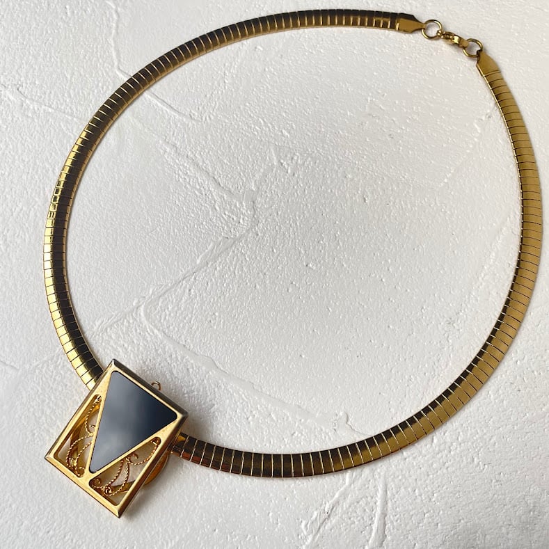 ヴィンテージデザインのスカーフクリップに、ステンレス製の滑らかな質感のコンパクトチェーンが、クラシカルな雰囲気を楽しめるModernLoopオリジナルのアップサイクルネックレスです。