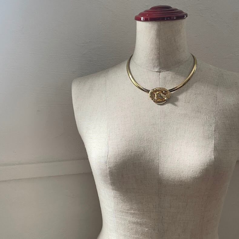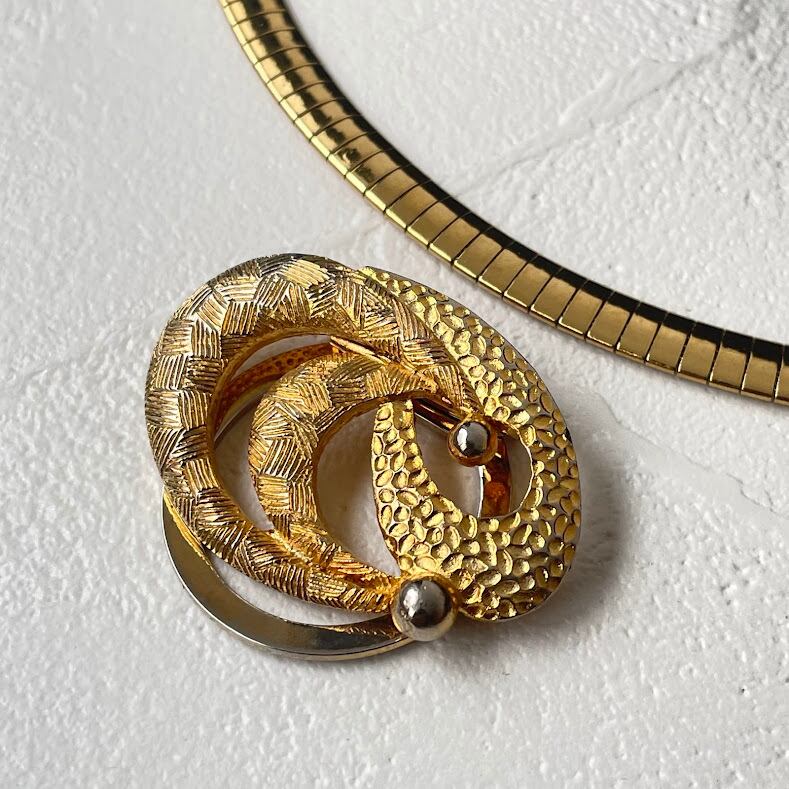 ヴィンテージデザインのスカーフクリップに、ステンレス製の滑らかな質感のコンパクトチェーンが、クラシカルな雰囲気を楽しめるModernLoopオリジナルのアップサイクルネックレスです。