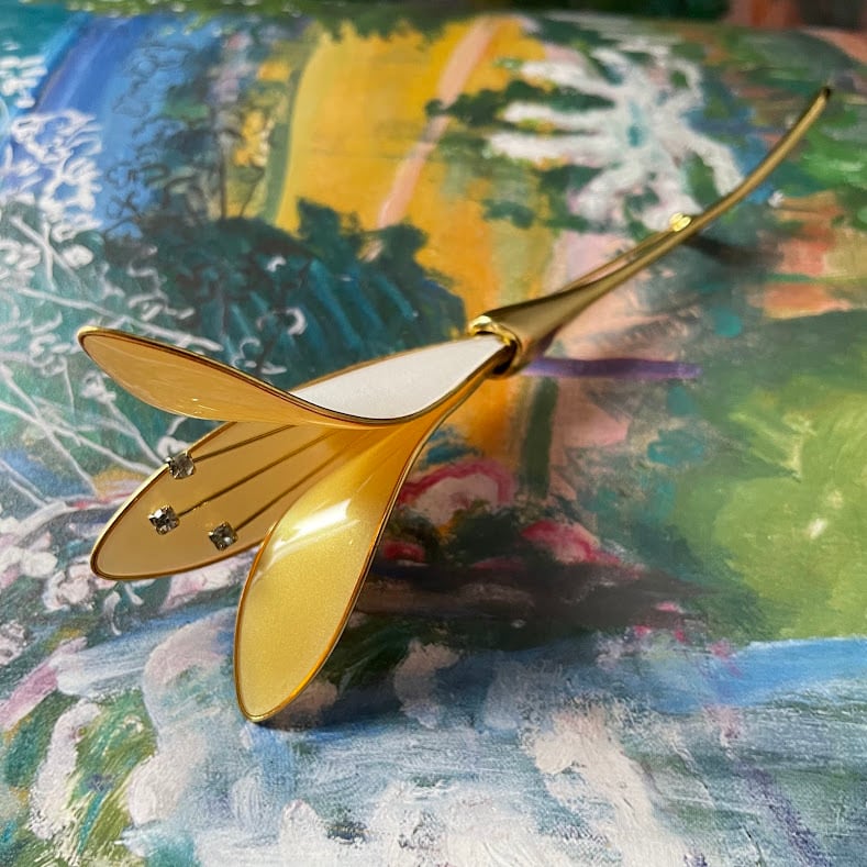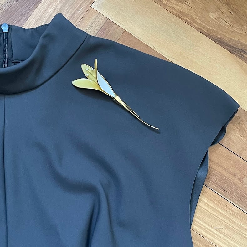 花びらの艶感あるベージュの色合いが素敵なブローチです。