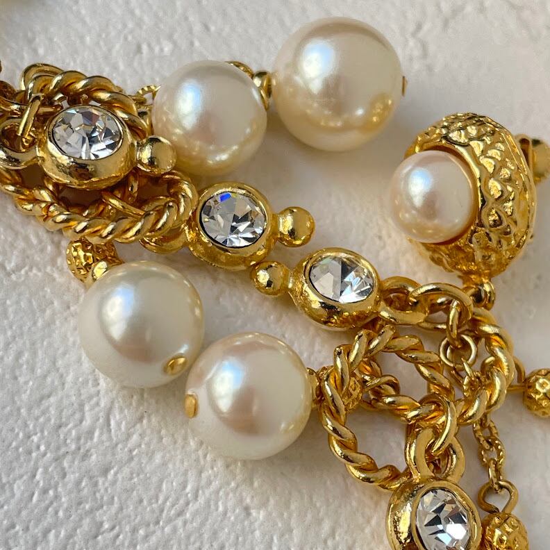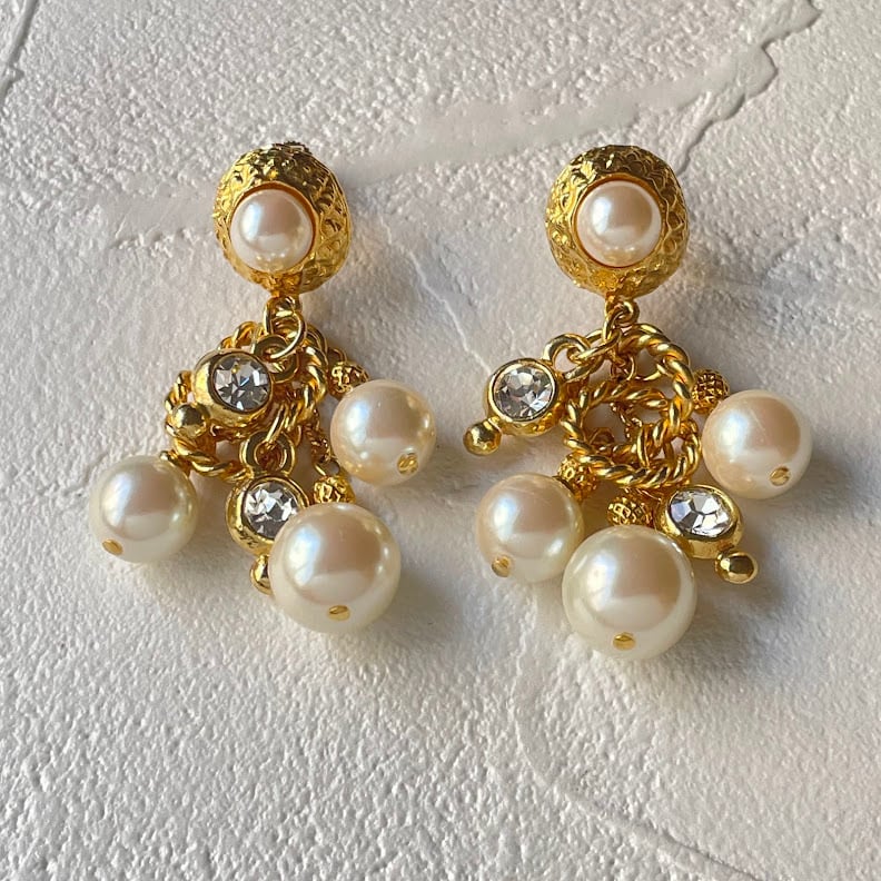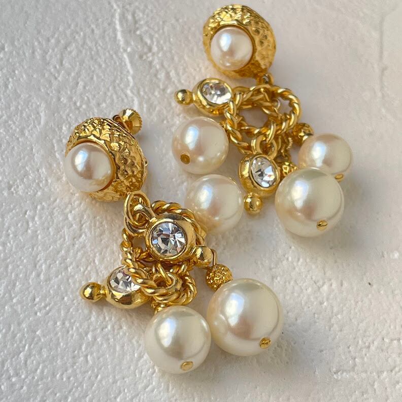 パールとガラスの組み合わせが華やかな雰囲気のイヤリングです。