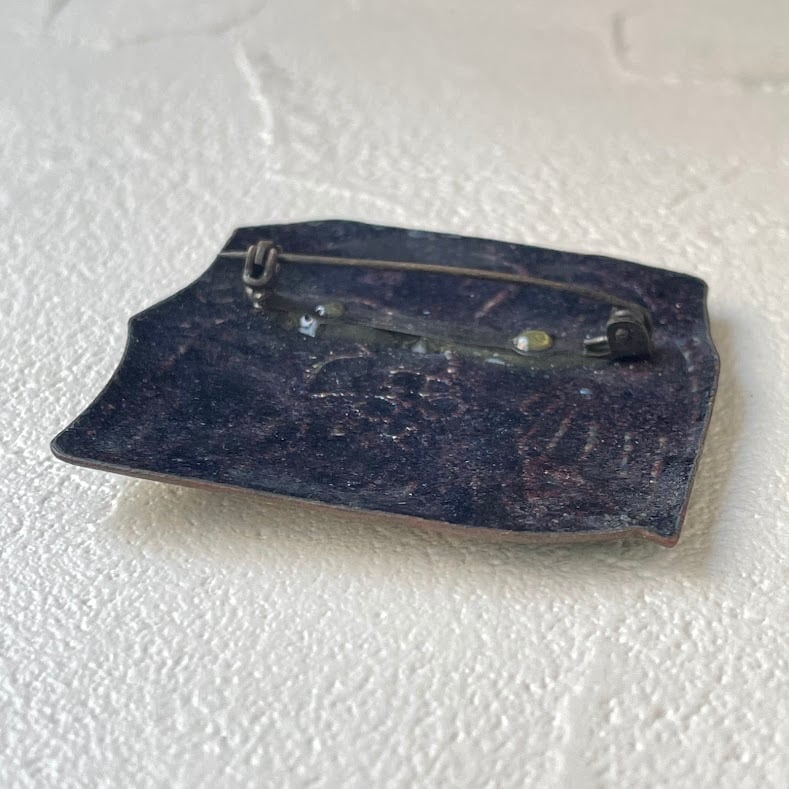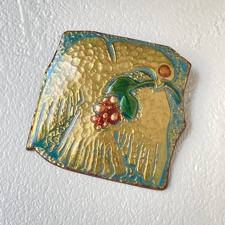 描かれたトリのデザインが雰囲気ある七宝焼きのブローチです。