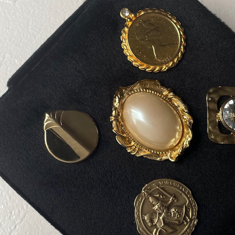 本製品はUSEDブローチのモチーフ部分を装飾として使用しています。装飾部分に強い力を加えたり、無理に押したりすると破損する恐れがありますので、取り扱いにはご注意ください。