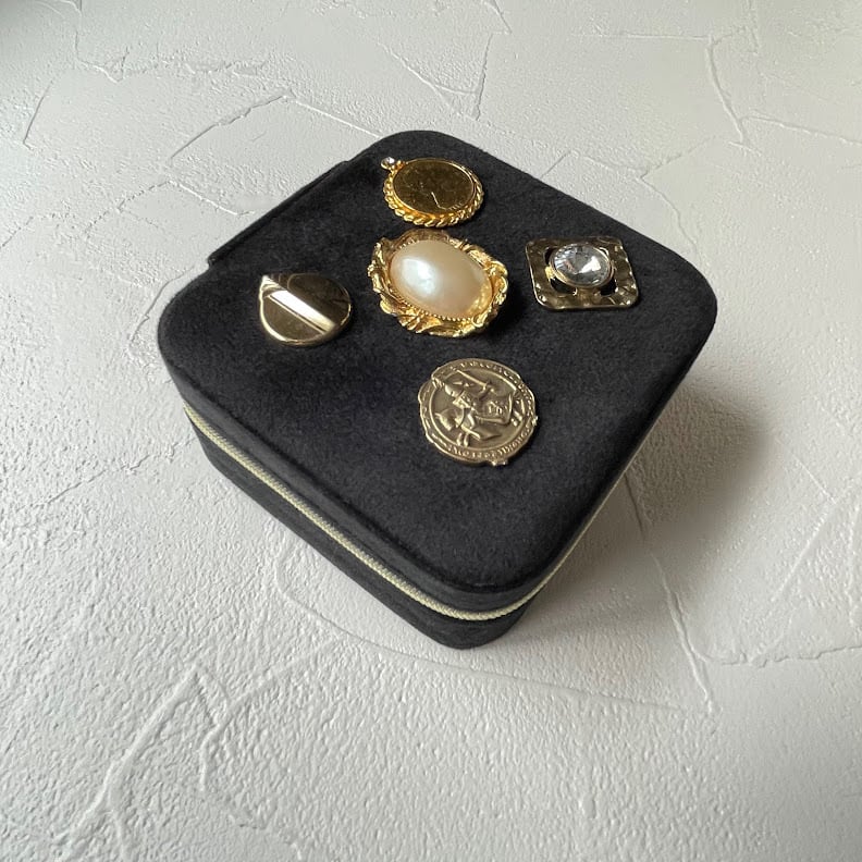 新品のジュエリーボックスに、ユーズドアクセサリーのモチーフ部分を装飾したアップサイクルアイテム。