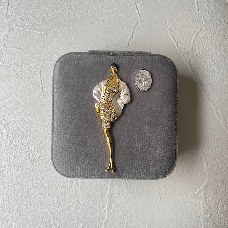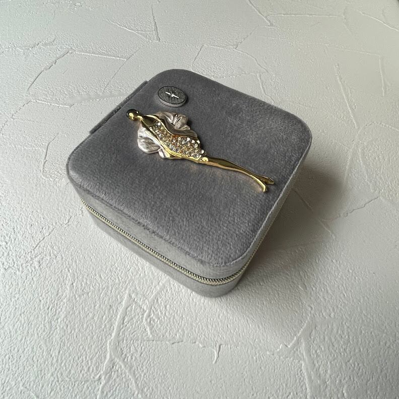 本製品はUSEDブローチのモチーフ部分を装飾として使用しています。装飾部分に強い力を加えたり、無理に押したりすると破損する恐れがありますので、取り扱いにはご注意ください。