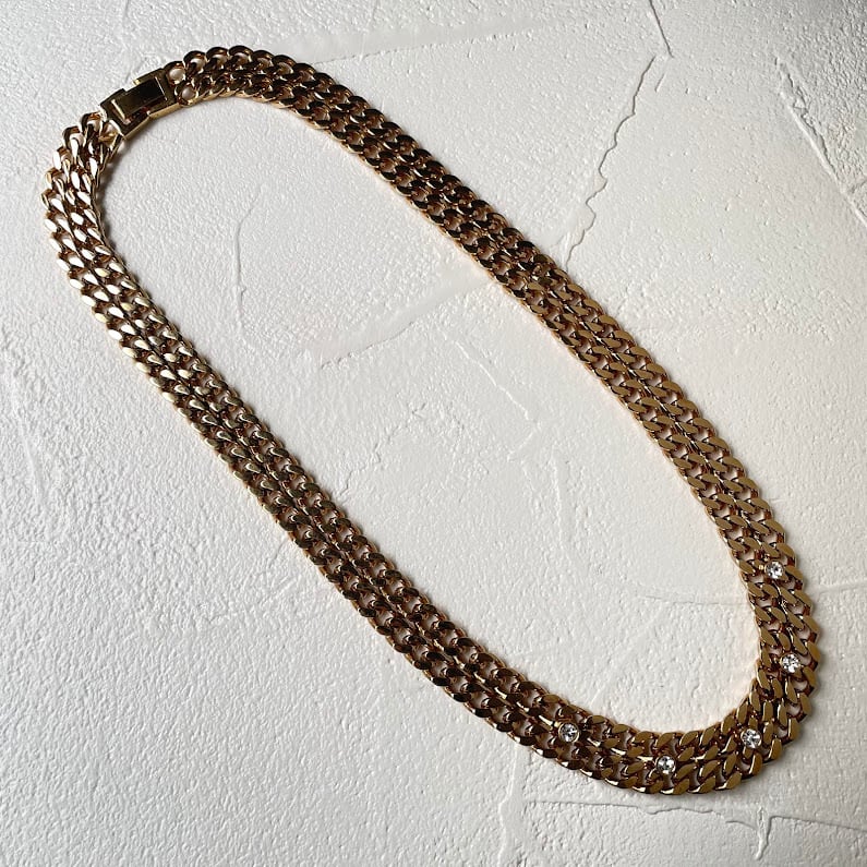 太目のチェーンにガラスストーンが魅力のネックレスです。