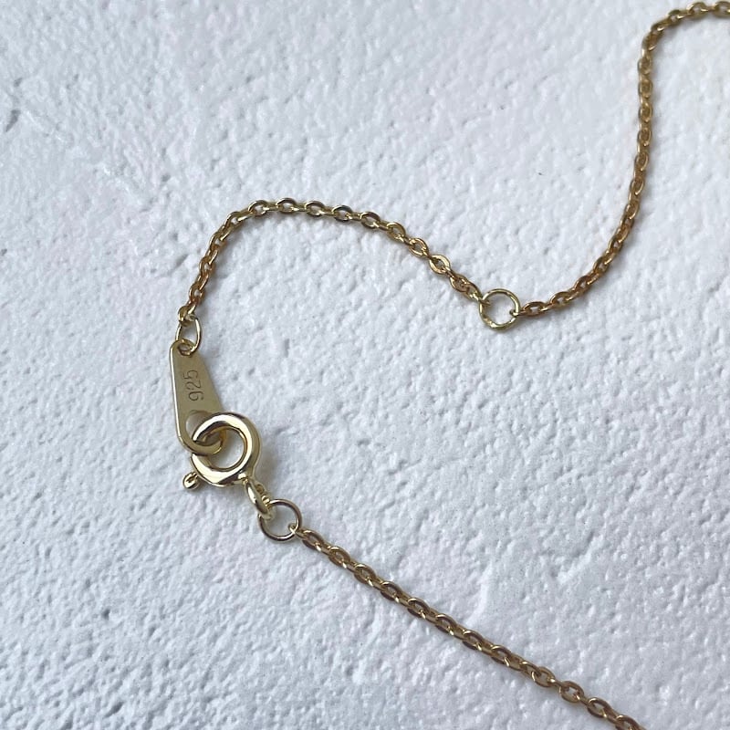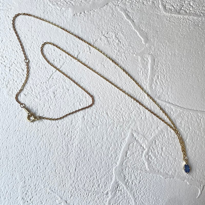 カットが入った小ぶりなサファイアが上品に輝く、シルバー925のゴールドメッキ仕上げのネックレスです。