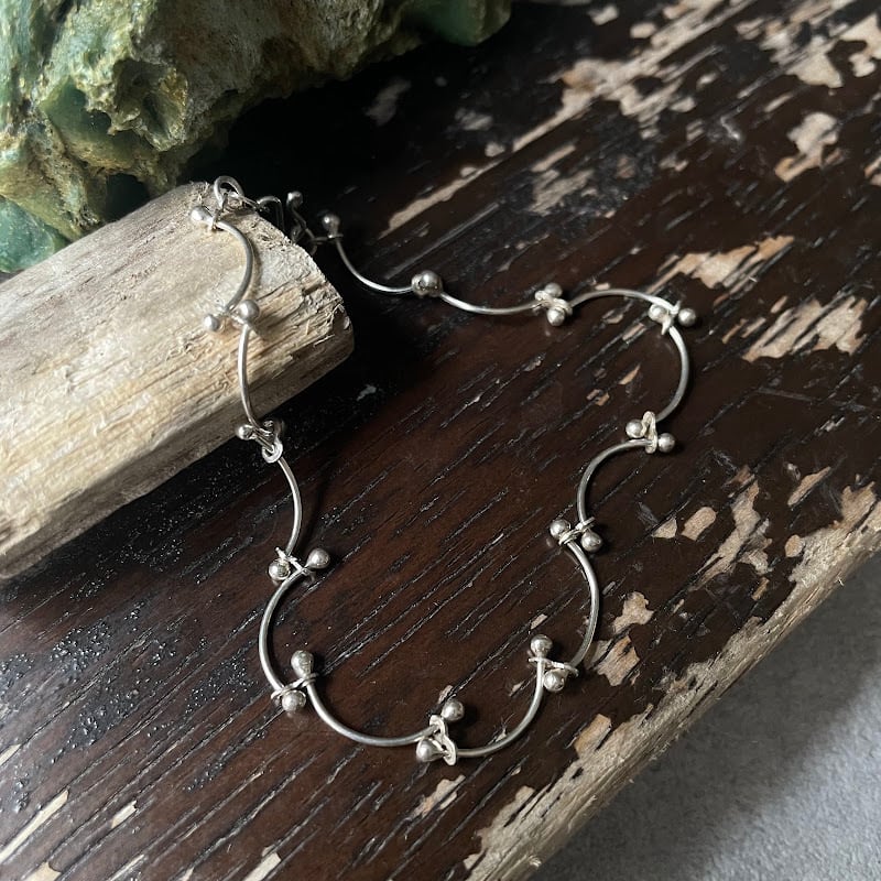 線で作られた植物のようなデザインが素敵なシルバー925のブレスレットです。