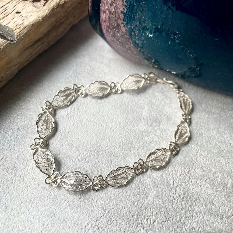 金属を糸状にして、特殊な技法で作られているフィグリー細工が素敵なシルバー925のブレスレットです。