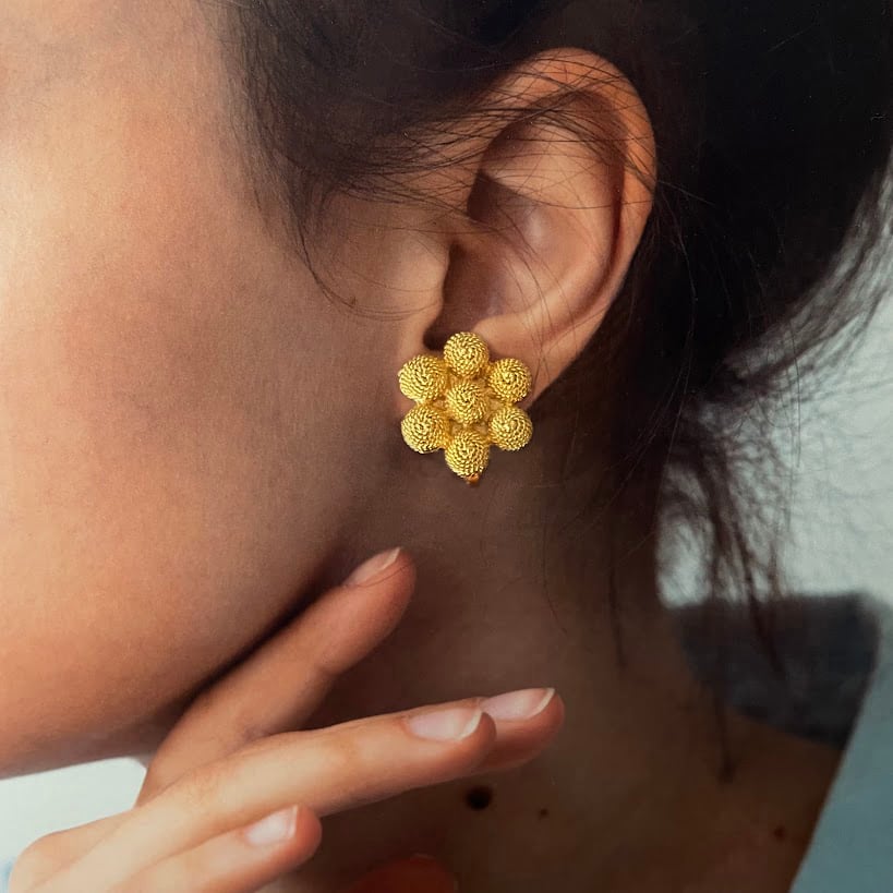 テクスチャーの入った立体的なグレインパーツが魅力のイヤリングです。
