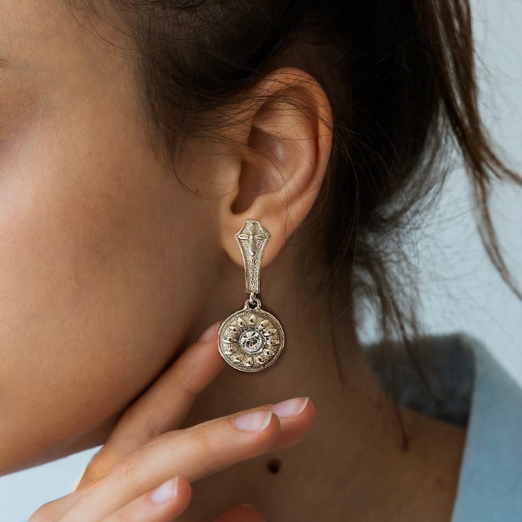 アンティークライクなテクスチャーデザインが雰囲気あるイヤリングです。