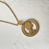 イギリスで1983年に発行されたヴィンテージコインをリメイクして作られた、ハンドメイドのネックレスです。