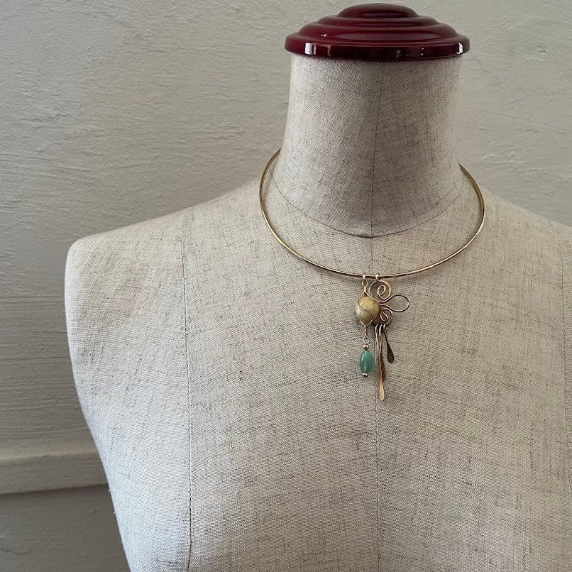 ステンレス製のチョーカーに個性豊かなデザインのUSEDチャーム達を組み合わせた、ModernLoopオリジナルのアップサイクルネックレスです。