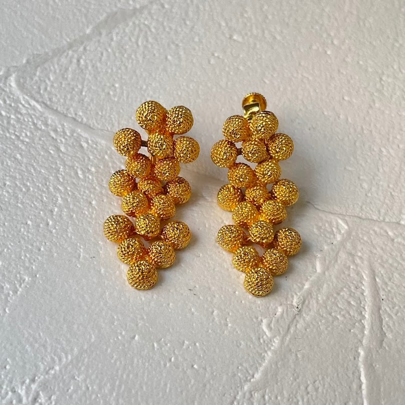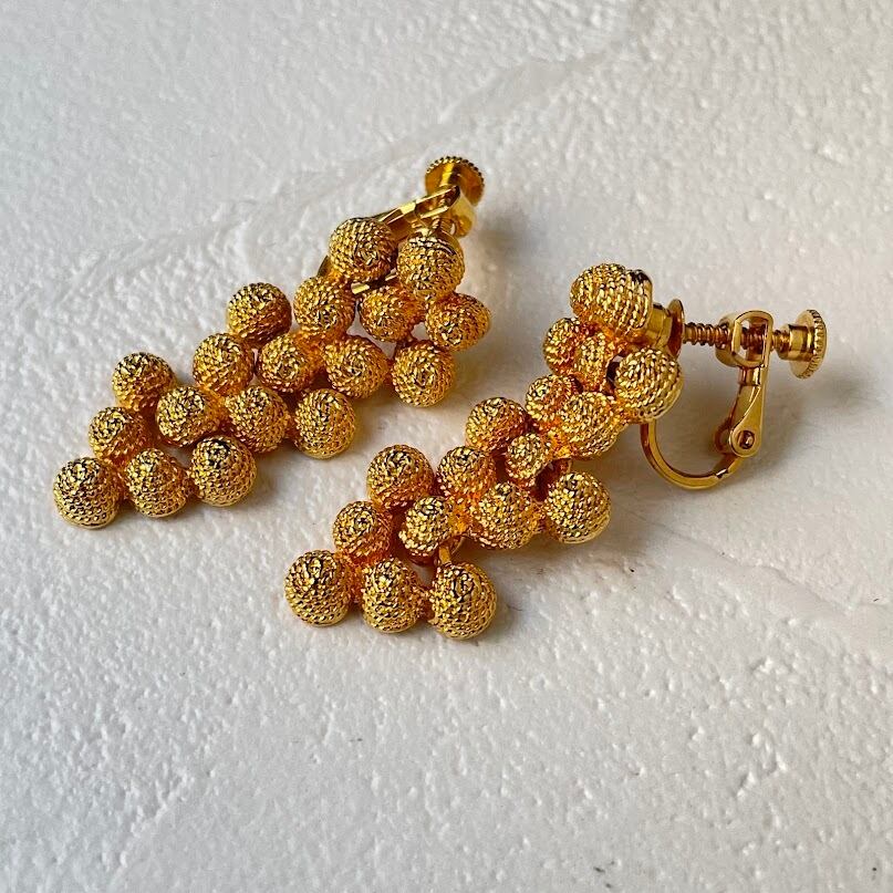 テクスチャーの入った立体的なグレインパーツが魅力のイヤリングです。