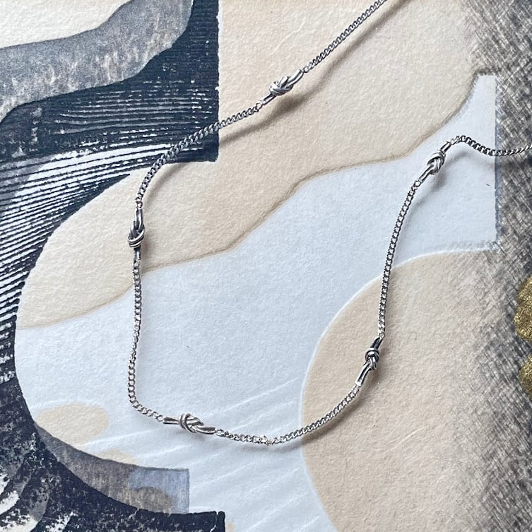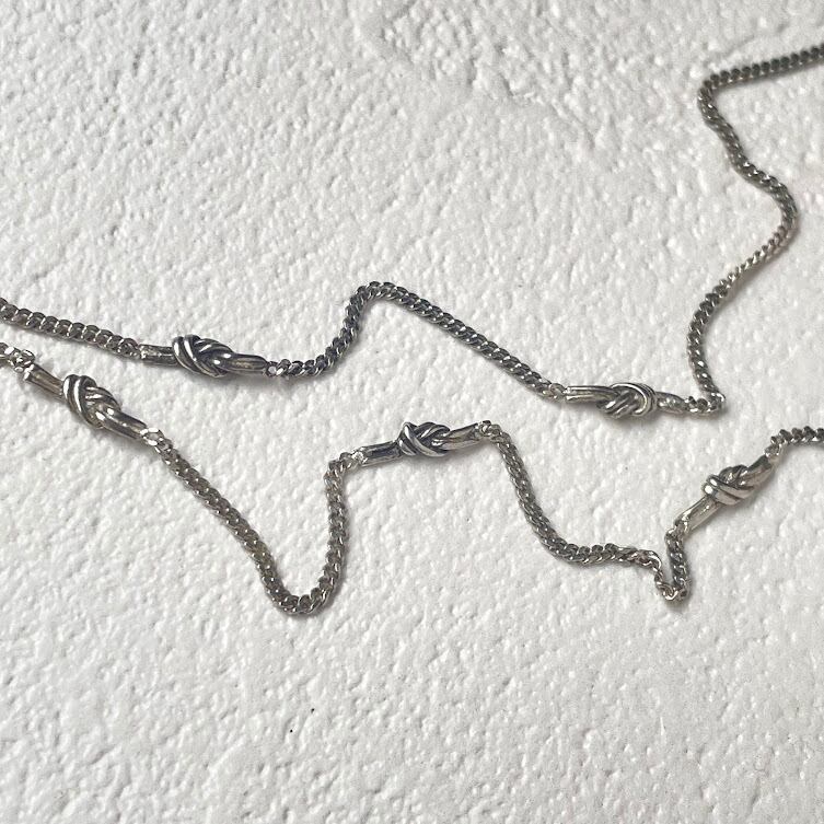 チェーンの間に、結びのパーツがアクセントで入った華奢なデザインのシルバー925のネックレスです。