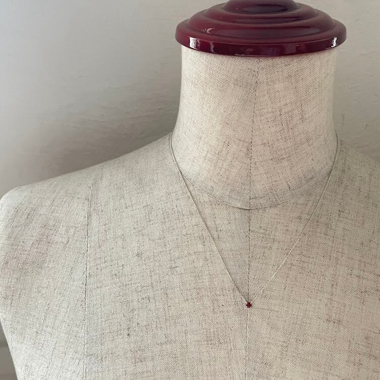 カットが入った小ぶりなガーネットが上品に輝く、シルバー925のネックレスです。