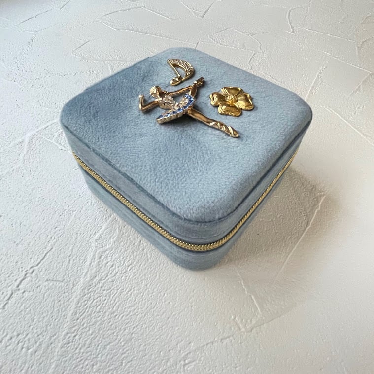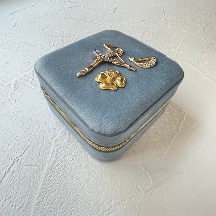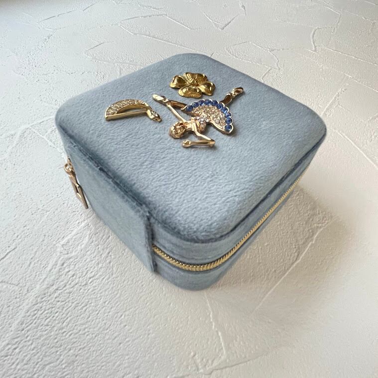 新品のジュエリーボックスに、ユーズドアクセサリーのモチーフ部分を装飾したアップサイクルアイテム。