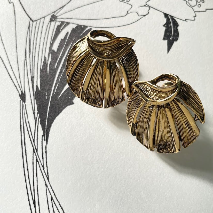 細かなテクスチャーが入ったリーフデザインが、素敵なイヤリングです。