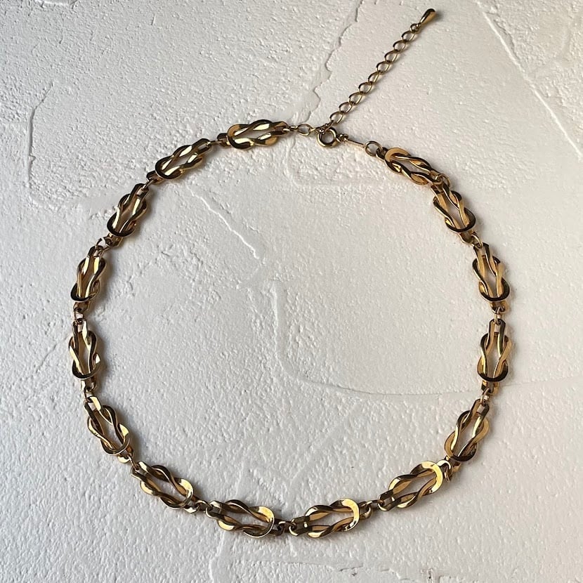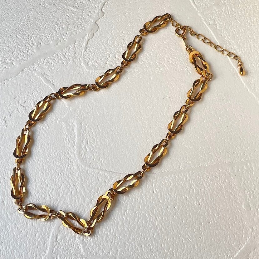 チェーンを重ねた、立体的な抜け感あるデザインが魅力のチョーカーのネックレスです。